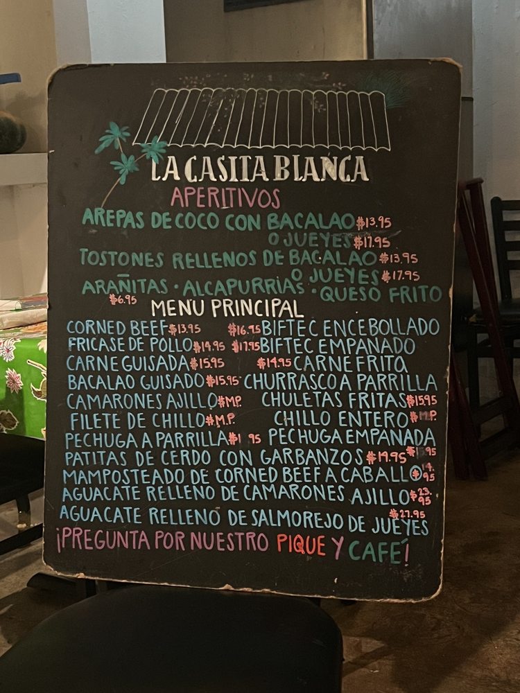 La Casita Blanca Menu